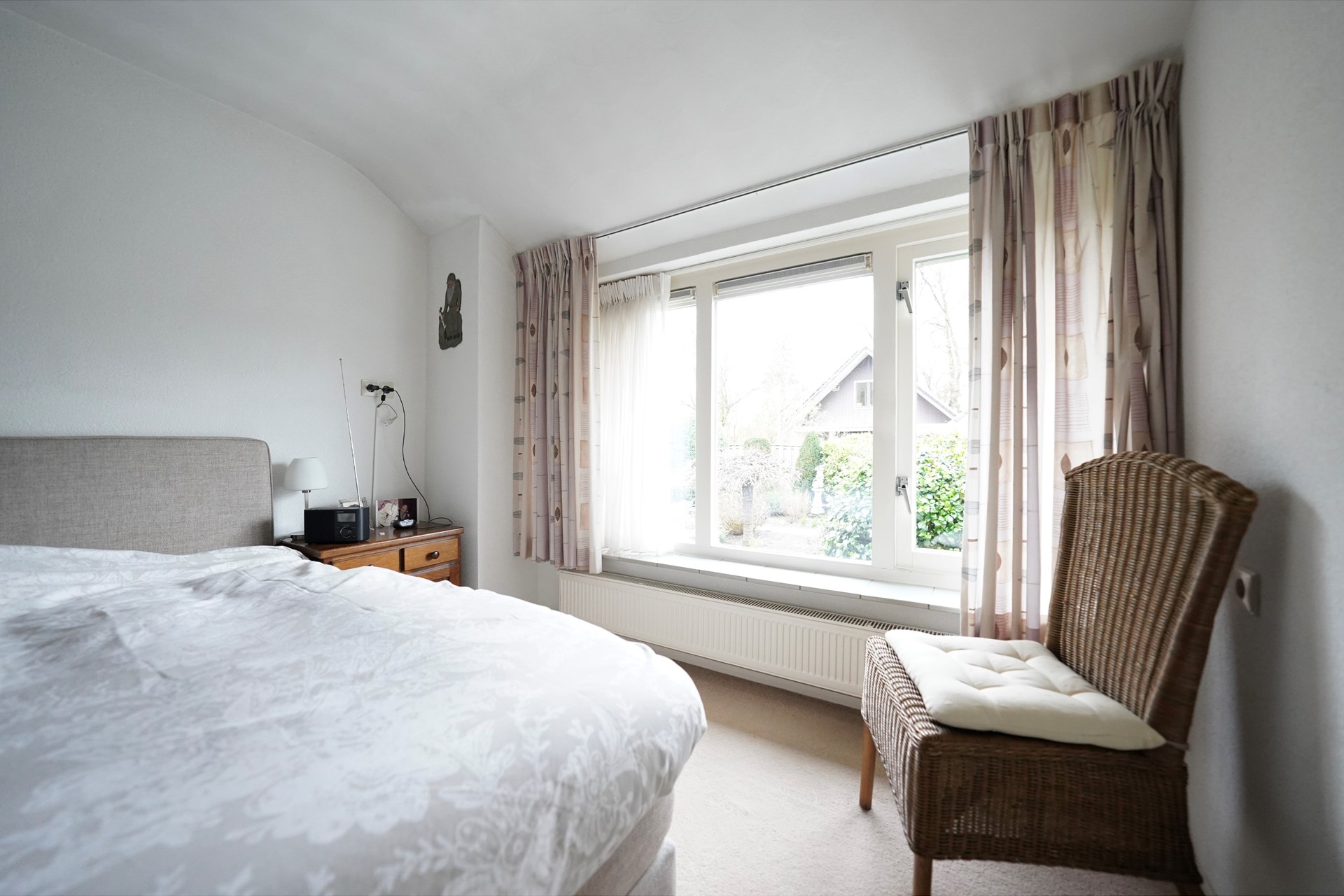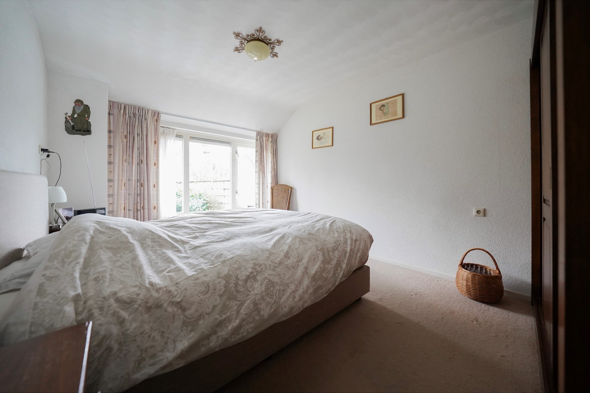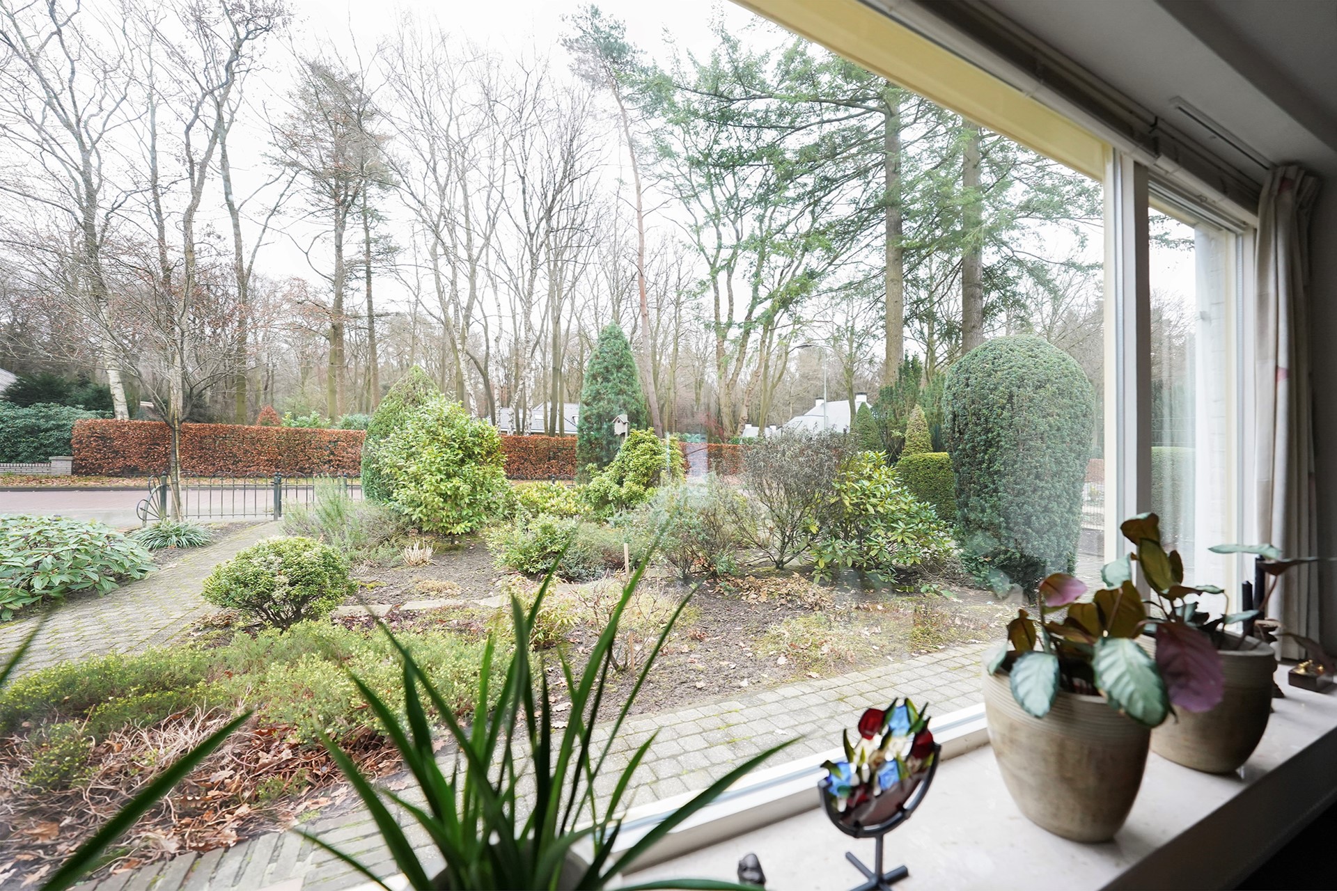 Via een afgesloten hekwerk lopen we het pad op in de voortuin richting de voordeur. Het stalen frame, de ingemetselde brievenbus, de voordeur zelf; Hier maakt ons hart een sprongetje bij. Wat kunnen deze fraaie elementen een huis al maken! De entree is verzorgd en licht ingericht. Er is ruimte voor de jassen en voor de post hoef je dus niet naar buiten. Vanuit de hal zijn alle ruimtes te bereiken en via 2 tredes omhoog kom je bij de slaapkamer en de badkamer. Maar eerst lopen we links om richting de woonkamer en de keuken. Vanuit de woonkamer is dat heerlijke uitzicht over je eigen tuin, over de straat en de prachtige hoge bomen. Hier kunt u heerlijk zitten en van het uitzicht genieten. De grote raampartijen en de grote schuifpui aan de zijkant van de woning maken deze ruimte ook heerlijk licht. Bij de schuifpui is ook een heerlijk terras aangelegd, perfect op de zon. Aan de achterzijde is keuken gesitueerd. Een hoekkeuken met alle inbouwapparatuur en in lichte, neutrale kleurstelling uitgevoerd. Vanuit de keuken loop je zo lekker de achtertuin in. We lopen weer terug naar de hal en via de 2 tredes naar boven komen we in de ruime slaapkamer die ook aan de achterzijde is gelegen. Zoals u op de foto’s ook wel kunt zien kan hier een groot tweepersoonsbed staan en een ruime kledingkast. Aan de voorzijde is een verrassend ruime en frisse badkamer gelegen voorzien van een whirlpool bad, een ruime inloopdouche met zitje en glazen wanden om de warmte lekker bij de douche te houden. En er is nog een ruime wastafelmeubel met handige kastruimte. De badkamer is heel comfortabel voorzien van vloerverwarming. De grote raampartijen geven lekker veel licht maar zijn ook zo ingericht met volledige privacy. Direct bij de voordeur, te bereiken vanuit de hal, is de toiletruimte gesitueerd met hangend toilet en wastafel. Vanuit de hal is ook de kelderruimte te bereiken. Hier bevindt zich nu de aansluiting voor de wasmachine en de droger. Ook is de cv-installatie, nog vernieuwd in 2024, hier aanwezig. Een handige extra (berg)ruimte, bereikbaar via een vaste trap. Deze ruimte is niet geheel stahoogte.