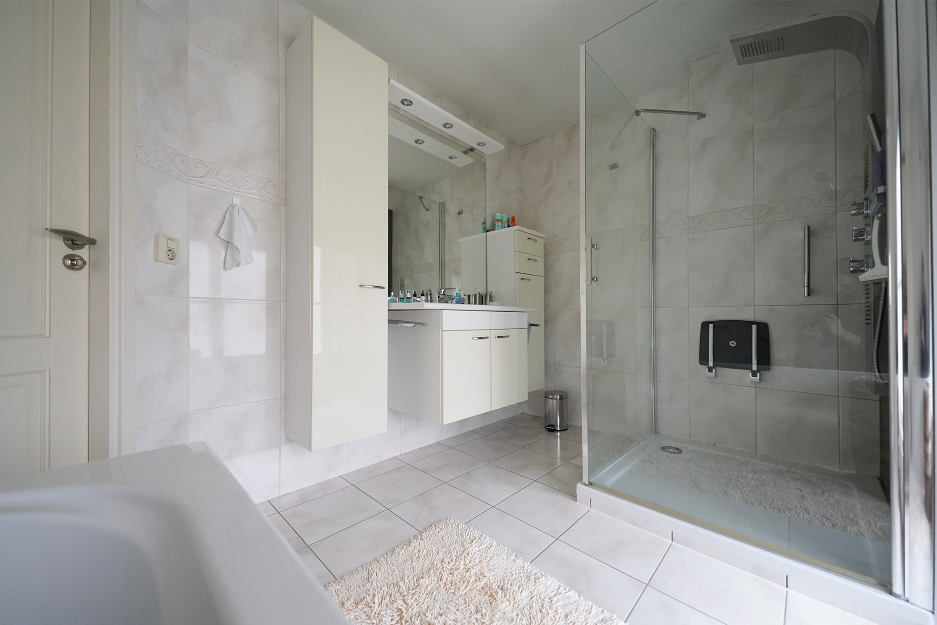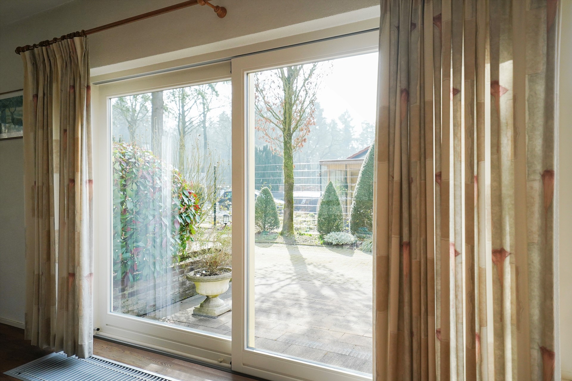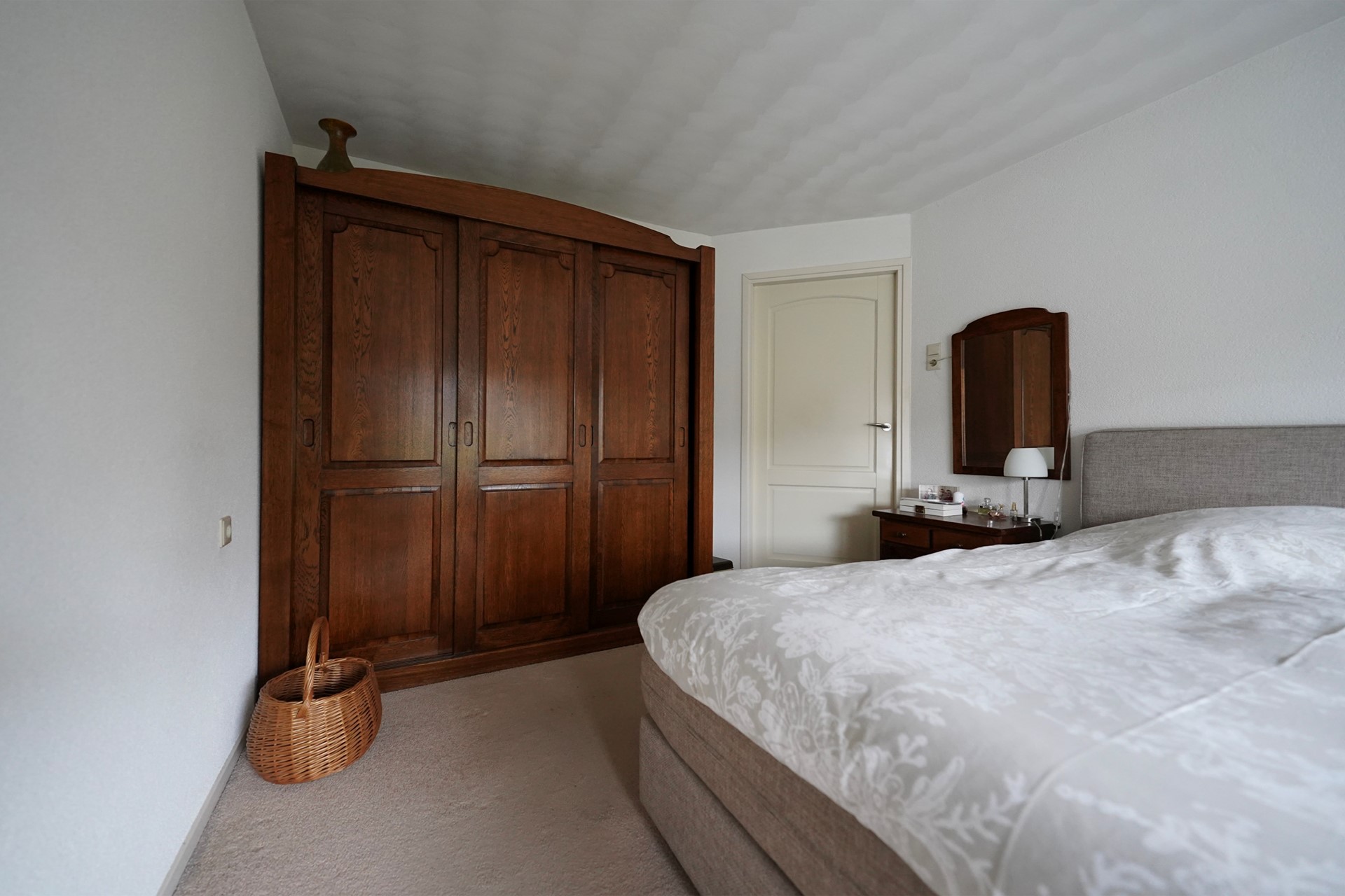 Via een afgesloten hekwerk lopen we het pad op in de voortuin richting de voordeur. Het stalen frame, de ingemetselde brievenbus, de voordeur zelf; Hier maakt ons hart een sprongetje bij. Wat kunnen deze fraaie elementen een huis al maken! De entree is verzorgd en licht ingericht. Er is ruimte voor de jassen en voor de post hoef je dus niet naar buiten. Vanuit de hal zijn alle ruimtes te bereiken en via 2 tredes omhoog kom je bij de slaapkamer en de badkamer. Maar eerst lopen we links om richting de woonkamer en de keuken. Vanuit de woonkamer is dat heerlijke uitzicht over je eigen tuin, over de straat en de prachtige hoge bomen. Hier kunt u heerlijk zitten en van het uitzicht genieten. De grote raampartijen en de grote schuifpui aan de zijkant van de woning maken deze ruimte ook heerlijk licht. Bij de schuifpui is ook een heerlijk terras aangelegd, perfect op de zon. Aan de achterzijde is keuken gesitueerd. Een hoekkeuken met alle inbouwapparatuur en in lichte, neutrale kleurstelling uitgevoerd. Vanuit de keuken loop je zo lekker de achtertuin in. We lopen weer terug naar de hal en via de 2 tredes naar boven komen we in de ruime slaapkamer die ook aan de achterzijde is gelegen. Zoals u op de foto’s ook wel kunt zien kan hier een groot tweepersoonsbed staan en een ruime kledingkast. Aan de voorzijde is een verrassend ruime en frisse badkamer gelegen voorzien van een whirlpool bad, een ruime inloopdouche met zitje en glazen wanden om de warmte lekker bij de douche te houden. En er is nog een ruime wastafelmeubel met handige kastruimte. De badkamer is heel comfortabel voorzien van vloerverwarming. De grote raampartijen geven lekker veel licht maar zijn ook zo ingericht met volledige privacy. Direct bij de voordeur, te bereiken vanuit de hal, is de toiletruimte gesitueerd met hangend toilet en wastafel. Vanuit de hal is ook de kelderruimte te bereiken. Hier bevindt zich nu de aansluiting voor de wasmachine en de droger. Ook is de cv-installatie, nog vernieuwd in 2024, hier aanwezig. Een handige extra (berg)ruimte, bereikbaar via een vaste trap. Deze ruimte is niet geheel stahoogte.