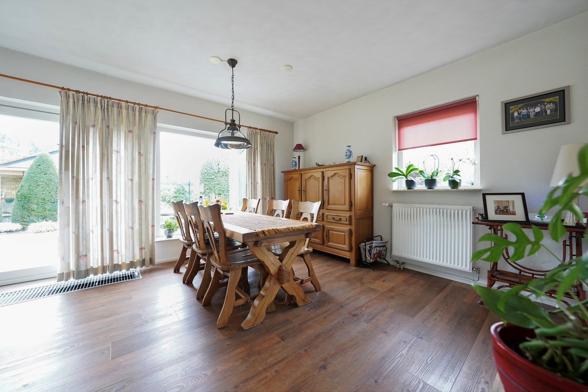 Een perfecte indeling met goede leefruimtes. Heel fijn is dan wel die nog hele grote garage voor wat extra bergruimte maar om bijvoorbeeld ook u eventuele hobby’s in te kunnen uitvoeren. De garage is voorzien van een extra breed overstek aan de zijgevel waar spullen droog kunnen staan. Handig! De achtertuin is daarbij een fijne plek om ook lekker van het zonnetje te kunnen genieten in volle privacy.