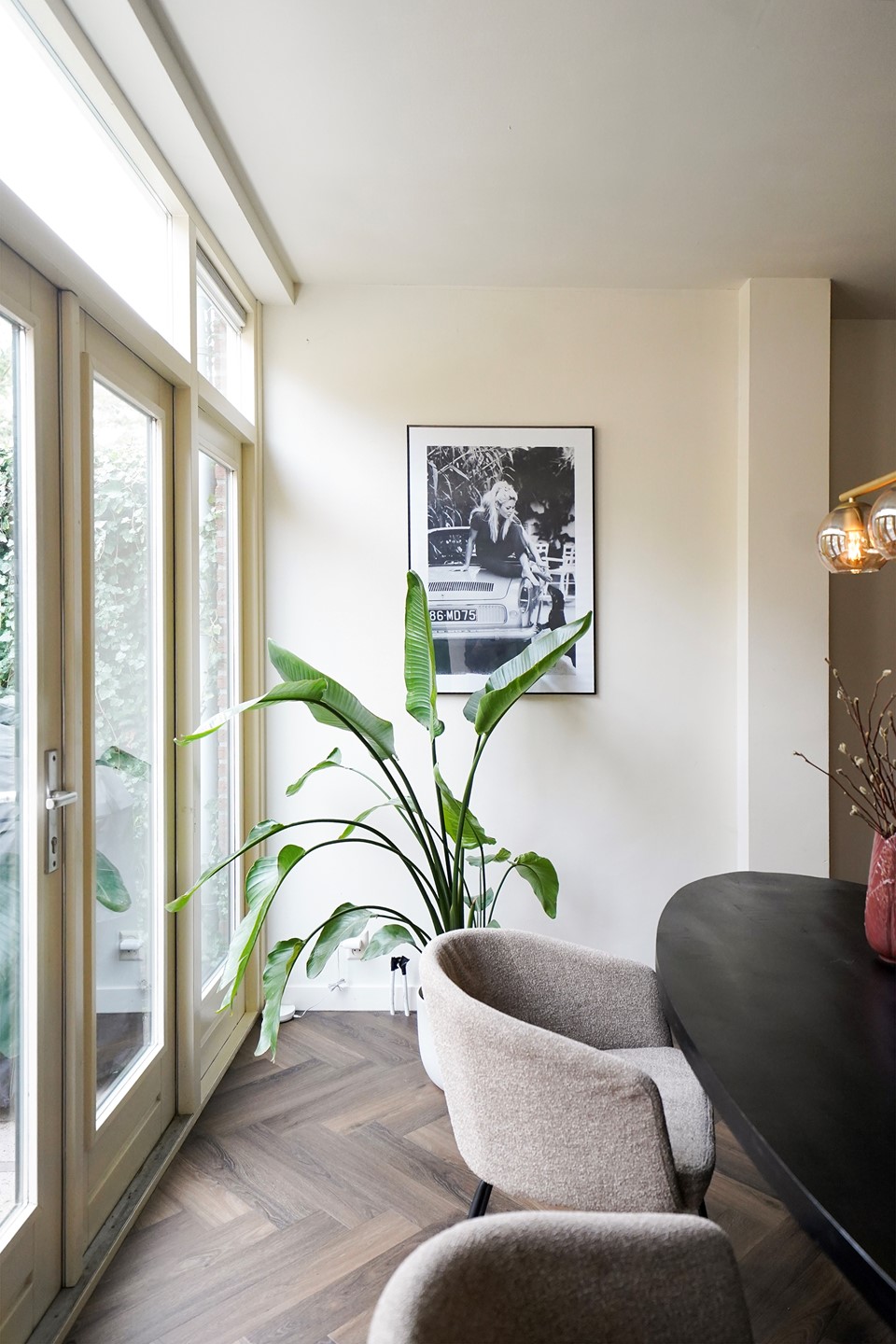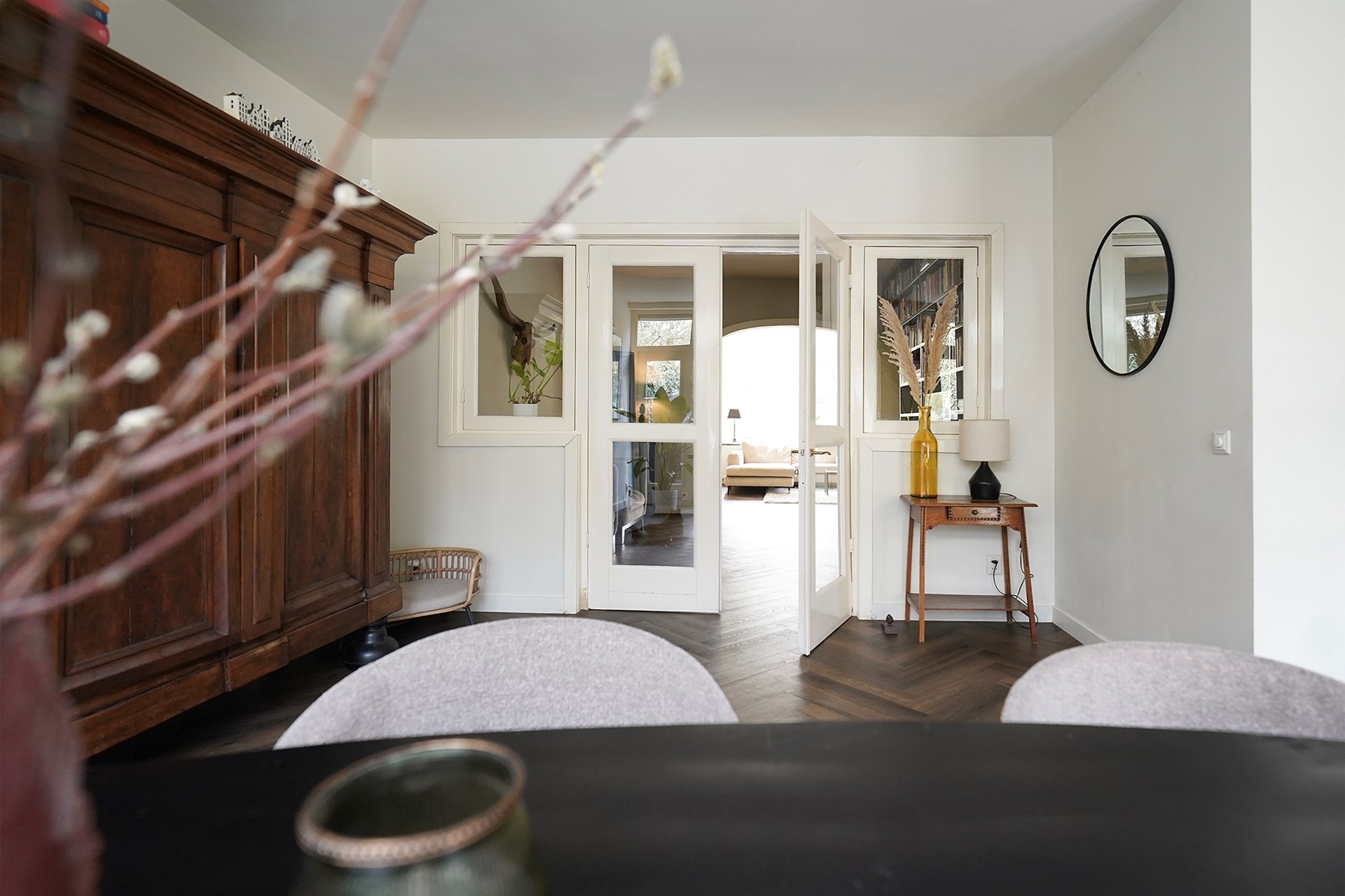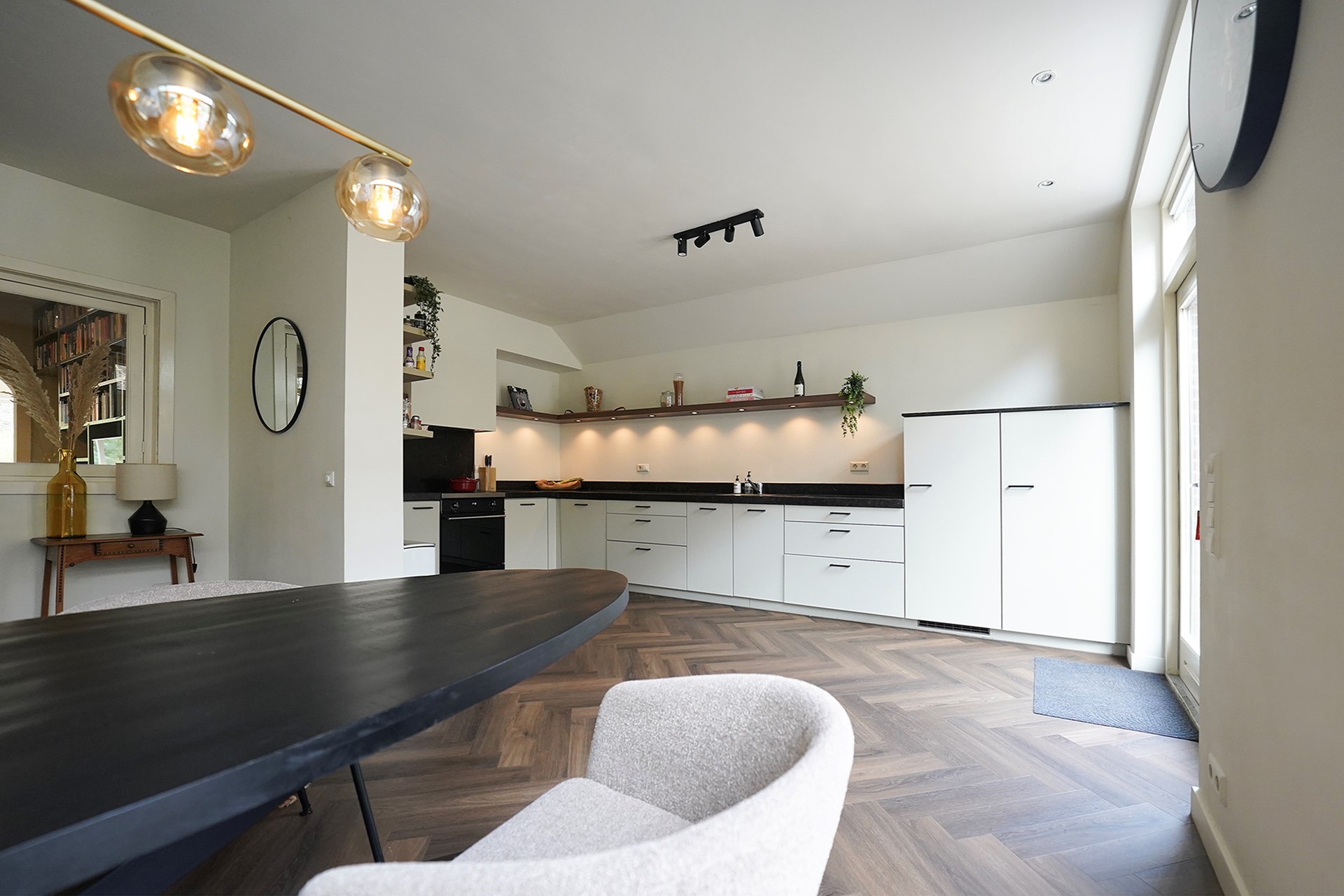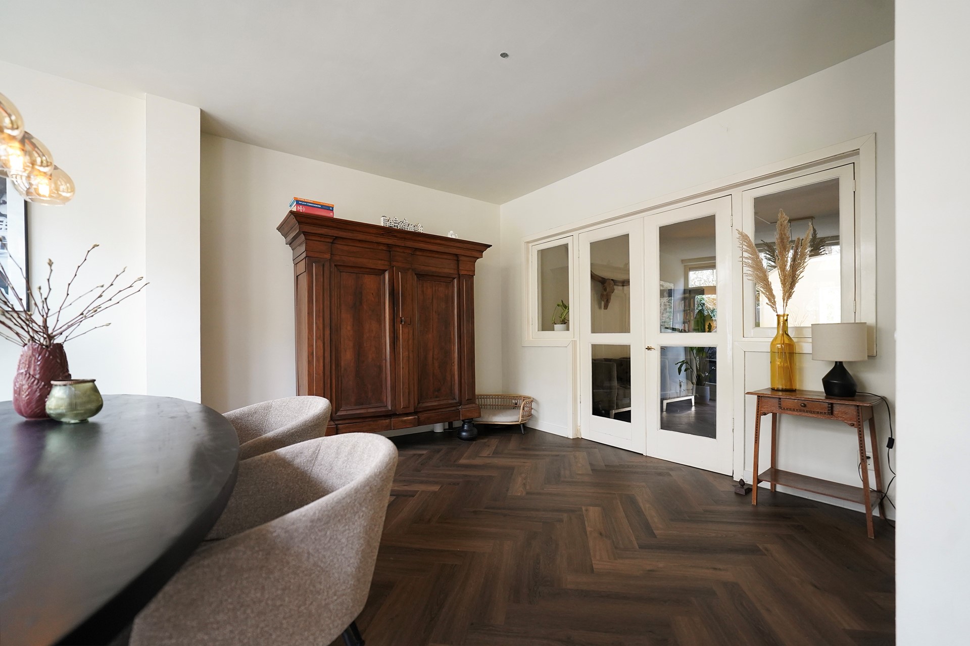 De woning is de afgelopen jaren met zorg gemoderniseerd, uitgebouwd en verduurzaamd. In 2025 is een hoogwaardige uitbouw gerealiseerd met een comfortabele slaapkamer en een moderne badkamer op de begane grond, waardoor gelijkvloers wonen mogelijk is. Ook hier zien we weer openslaande deuren naar de tuin. Deze multifunctionele ruimte kan ook als praktijk aan huis of kantoor worden gebruikt. De leefruimtes kenmerken zich door sfeer en licht. De visgraat PVC-vloer met vloerverwarming (2025) versterkt het stijlvolle karakter van het geheel. Zonnepanelen dragen bij aan een toekomstbestendig en energiezuinig wooncomfort.