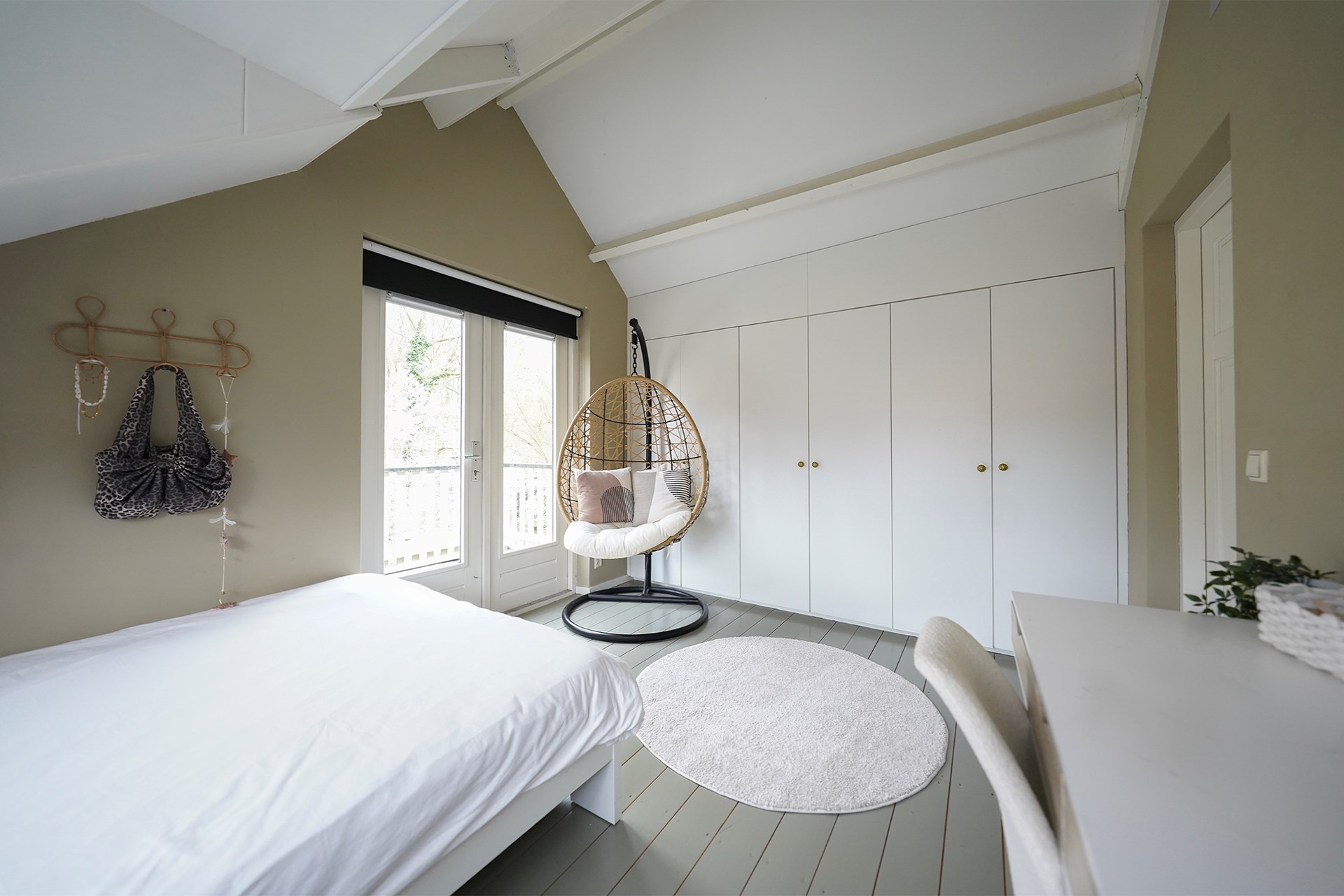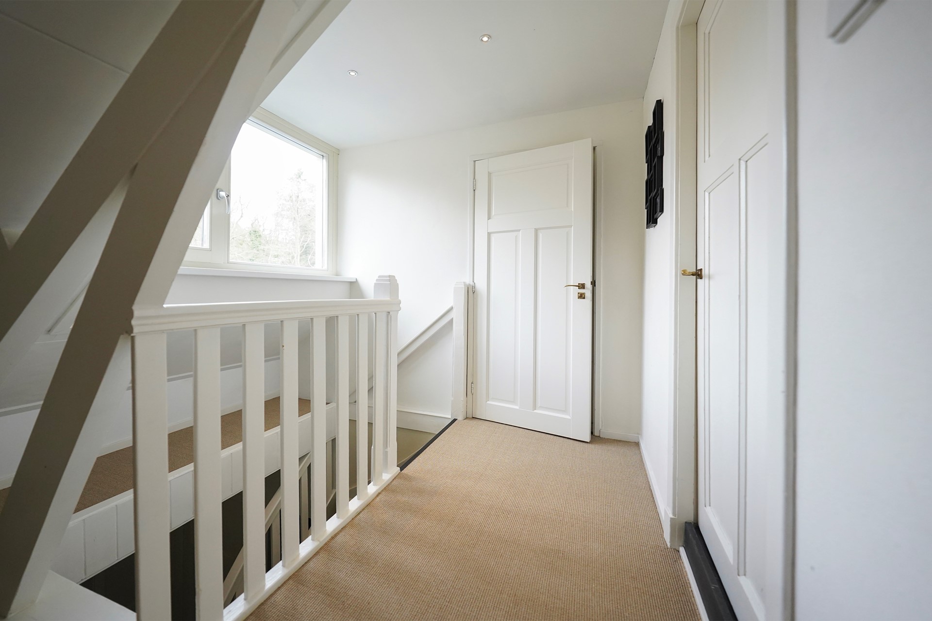 Op de 1e verdieping van de woning bevinden zich twee slaapkamers, beide goed van formaat en geschikt als hoofdslaapkamer, logeerkamer of werkruimte. Er zijn in 2023 dakkapellen geplaatst welke veel extra ruimte geven. De slaapkamer aan de achterzijde heeft een balkon met uitzicht op het bos heeft openslaande deuren. Tevens is er een inbouw kastenwand. De ruime en hoge badkamer is centraal gelegen en praktisch ingericht met bad en inloopdouche. Er is een separaat toilet. Op de 2e verdieping is veel extra bergruimte aanwezig, handig voor het opbergen van spullen.
