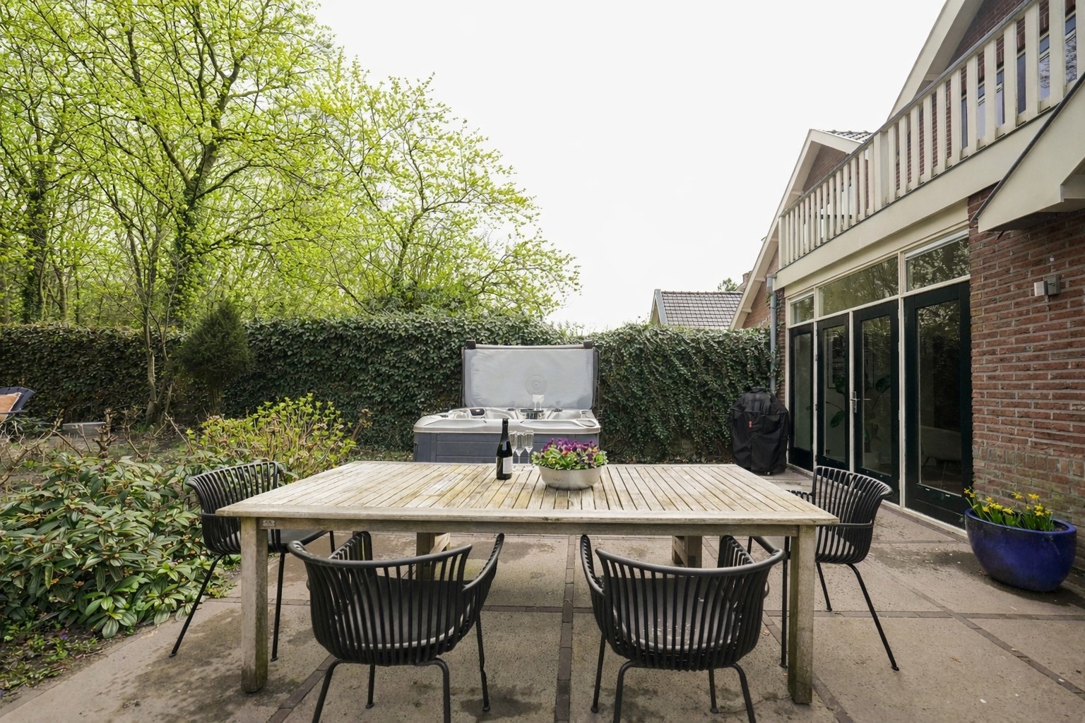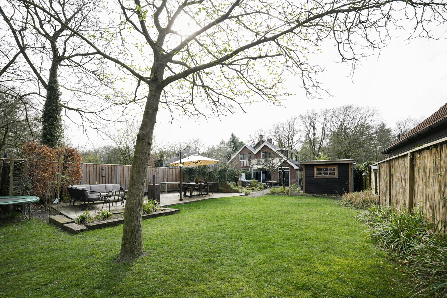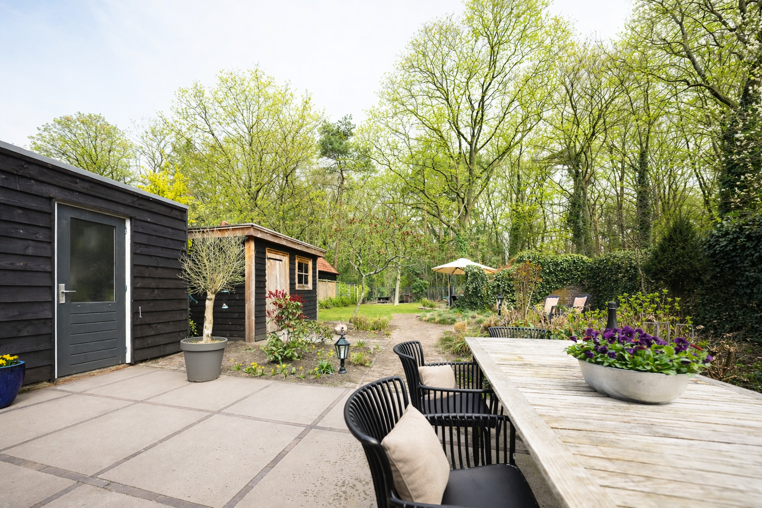 De fraaie, diepe achtertuin vormt een natuurlijk verlengstuk van de karakteristieke jaren '30 woning en biedt optimale privacy en is vanwege de diepte de gehele dag zonnig, zelfs tot in de avonduren. Hier ervaart u een unieke woonbeleving: vanuit uw eigen tuin loopt u DIRECT het bos in, oude bomen, schilderachtige paden, heide en lange wandelroutes, allemaal in uw achtertuin. De Krakelingweg speelt in deze bostuin geen rol, u hoort hier vooral vogels en de geluiden van de natuur. Een ideale omgeving voor wie houdt van wandelen, tuinieren, dieren en het buitenleven in optima forma.